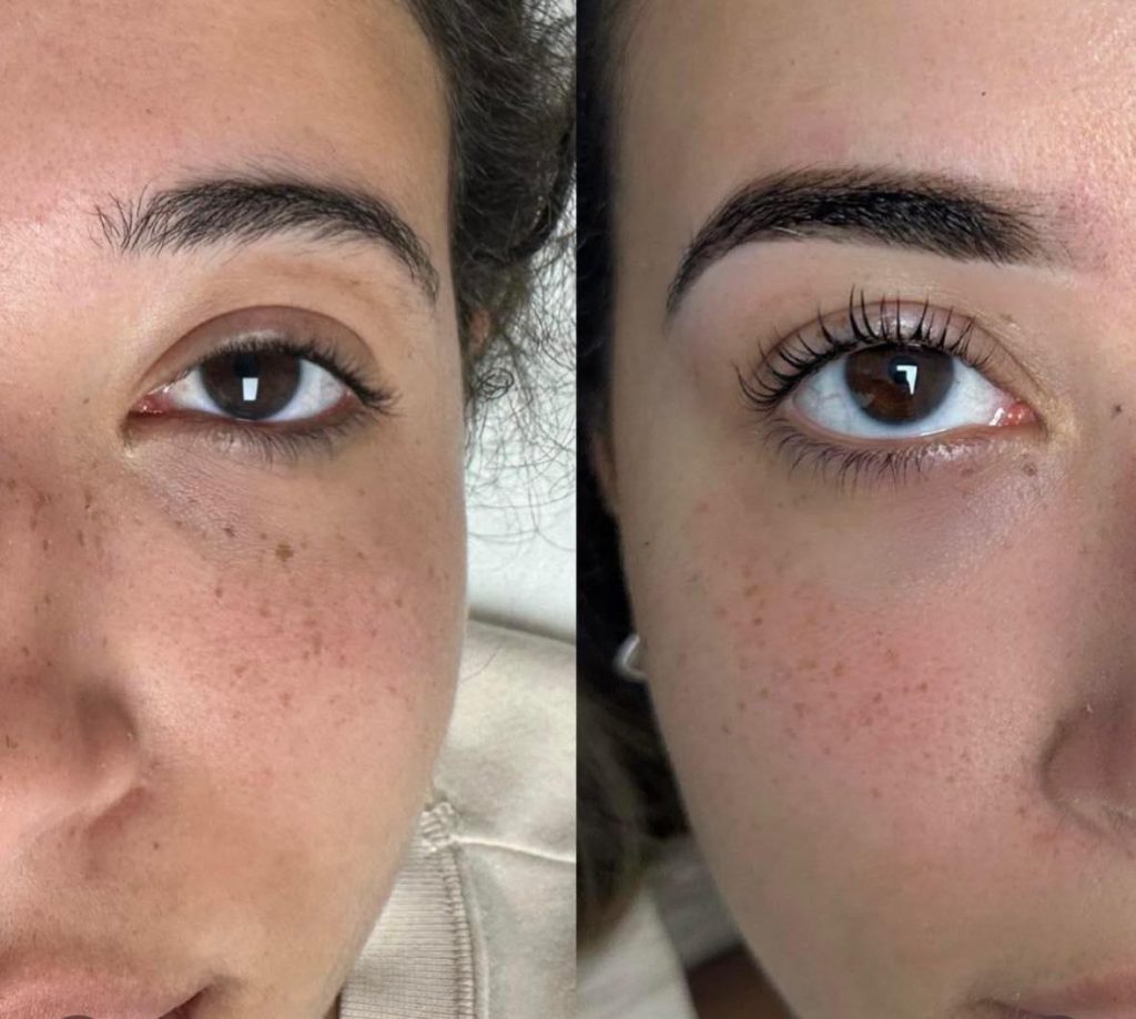 For lashes, our lash lift and tint enhances your natural lashes by adding lift, curl, and depth of colour creating a more open, defined look that lasts for weeks.