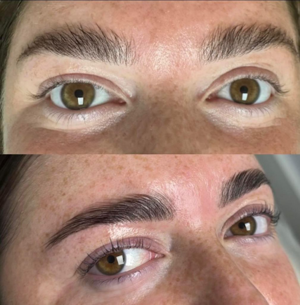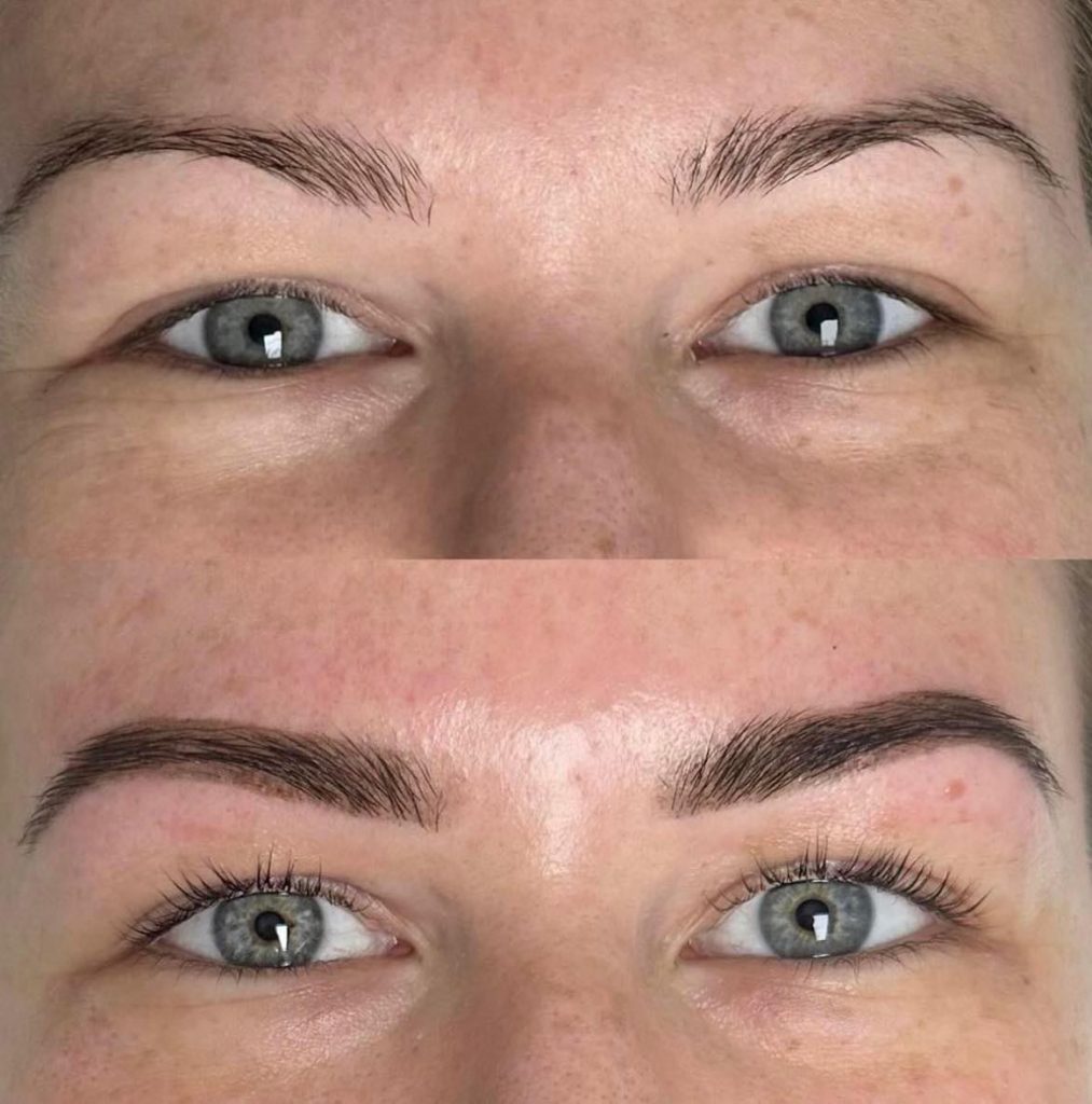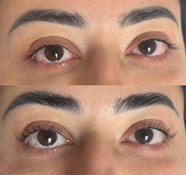 Brow lamination and lash lifts usually last 6–8 weeks, while tinting or hybrid dye lasts around 3–4 weeks, depending on your skin type and aftercare.
